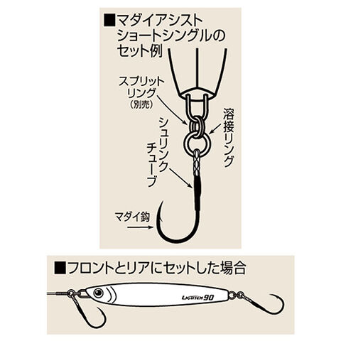 ◆マダイなどフッキングの難しいターゲットに対してフッキング率を向上させる、フレキシブルに動くショートタイプのアシストフック