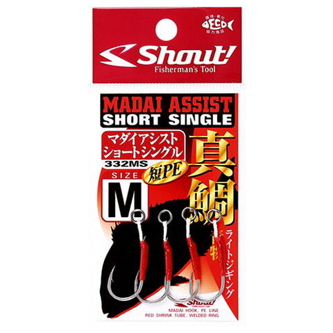 シャウト 真鯛アシスト ショートシングル M(4本) Shout MADAI ASSIST SHORT SINGLE 332MSM 【返品種別A】
