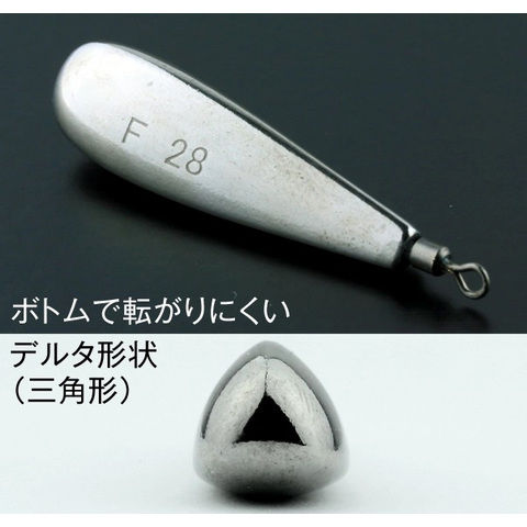 また、本体断面は三角形となっている。ボトムで横倒しになった際、不用意に転がりにくい形状だ。従来のシンカーだと、