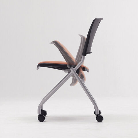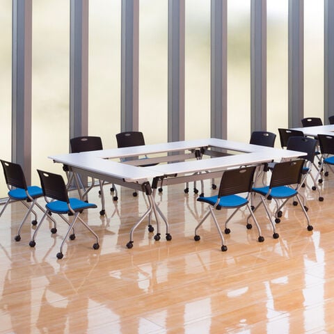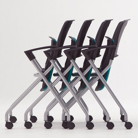 ◆座面を持ち上げてスライドさせるだけで簡単にスタッキングできる会議用チェアです。
