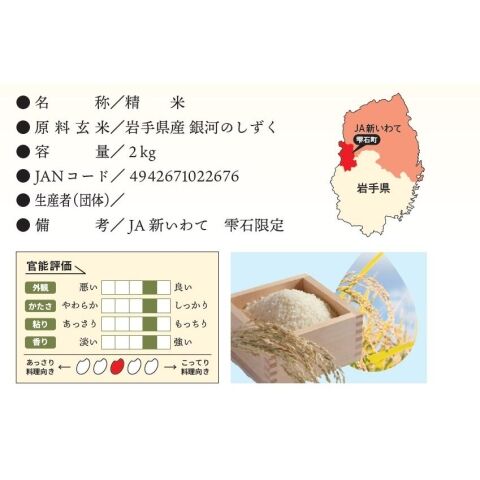 ライスフレンド JA新いわて 無洗米 岩手県産 銀河のしずく 2kg ムセンイワテギンガノシズク2KG 【返品種別B】