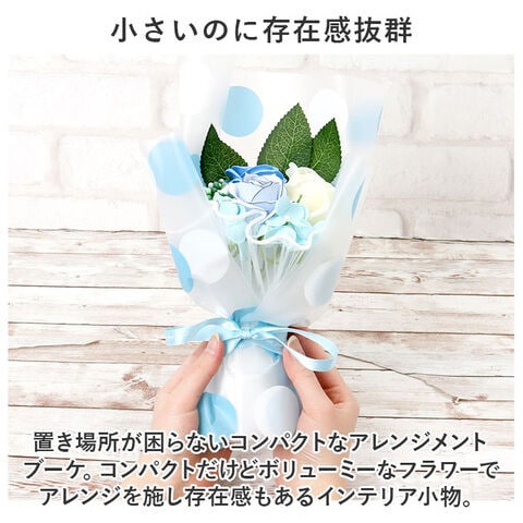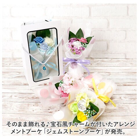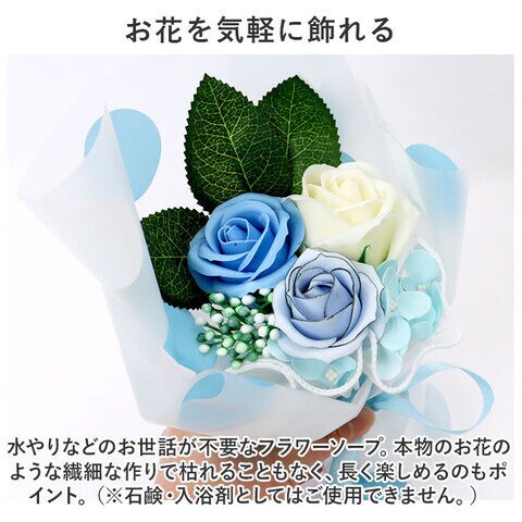 水やりなどのお世話が不要なフラワーソープ。本物のお花のような繊細な作りで枯れることもなく、長く楽しめるのもポイント。(※石鹸・入浴剤としてはご使用できません。)