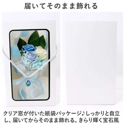 クリア窓が付いた紙袋パッケージ♪しっかりと自立し、届いてからそのまま飾れる。きらり輝く宝石風チャーム付き。