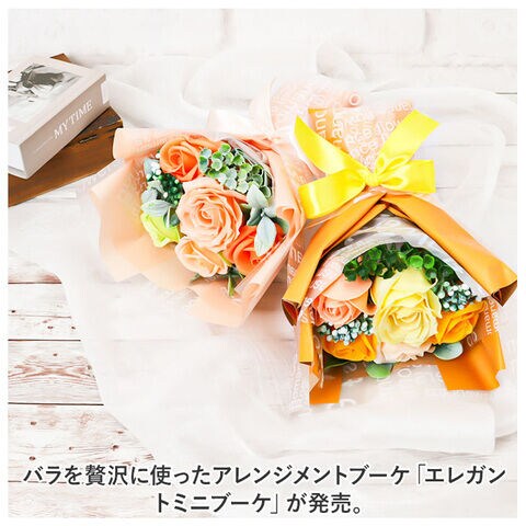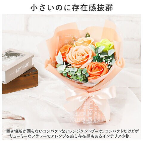 水やりなどのお世話が不要なフラワーソープ。本物のお花のような繊細な作りで枯れることもなく、長く楽しめるのもポイント。(※石鹸・入浴剤としてはご使用できません。)