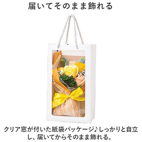 クリア窓が付いた紙袋パッケージ♪しっかりと自立し、届いてからそのまま飾れる。