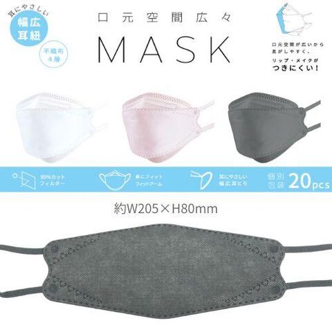 富士 口元空間広々マスク ダークグレー20枚 クチモトクウカンヒロビロマスク DG 【返品種別A】