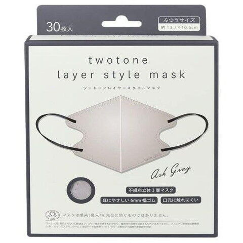 富士 ツートーンレイヤースタイルマスク 30枚 アッシュグレー ツ-ト-ンSマスク30マイ Aグレ- 【返品種別A】