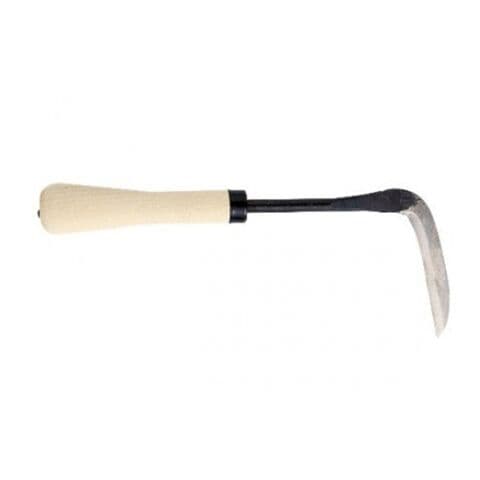 ◆植替え作業で盆栽と植木鉢を切りはなしに使う鎌です。