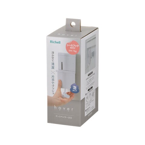 リッチェル ホバー シールフック泡ディスペンサー 250 【泡タイプ】(250ml・グレー) 浮かせて清潔、片手でプッシュ 泡タイプの液体ソープ専用容器 シ-ルアワデイスペンサ-250GY 【返品種別A】