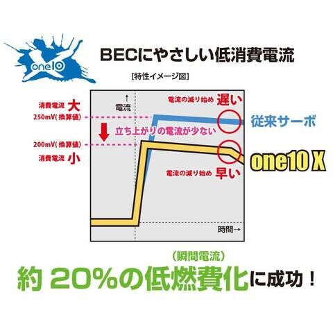 ESCのBEC回路(サーボ、受信機を動作させるための電源回路)にやさしく、BEC回路のダウンによるサーボの脱力などの不利な現象を発生する確率が飛躍的に低減します。