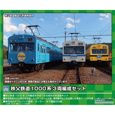 グリーンマックスNゲージ車両 エコノミーキットシリーズ、秩父鉄道1000系 3両編成セット(未塗装組立キット)です。