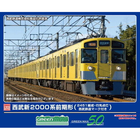 グリーンマックスのNゲージ車両 塗装済みキット、西武新2000系前期形(2451編成・西武鉄道マーク付き・行先点灯)増結用先頭車2両セットです。