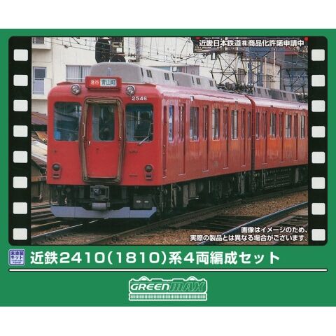 グリーンマックスNゲージ車両 エコノミーキットシリーズ、近鉄2410(1810)系 4両編成セット(未塗装組立キット)です。