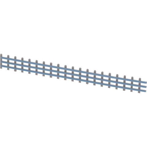 製品は支柱部分がグレーの成型色で、柵部分がブルーの仕様(着色済み) 長さ=80mm/本 手軽に工作を楽しめるよう、未塗装ストラクチャーキット(2109)鉄路柵(コンクリート)を着色済みとしたものです。 地上線を走る線路の端によくある柵が再現できます。