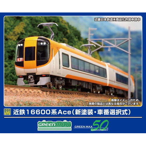 グリーンマックスのNゲージ車両 完成品、近鉄16600系Ace(新塗装・車番選択式)基本2両編成セット(動力付き)です。