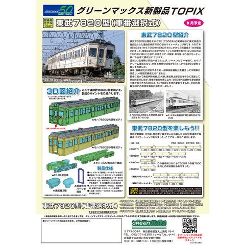 グリーンマックス (N) 50807 東武7820型(東上線・車番選択式)8両編成セット(動力付き) GM 50807 トウブ7820ガタ トウジョウセン 8R 【返品種別B】