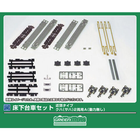 グリーンマックスのNゲージ用車両パーツ、床下台車セット 近郊タイプ クハ(サハ)2両用A(動力無し)です。