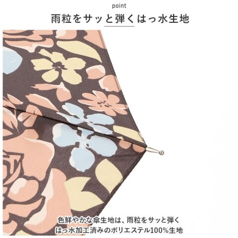 ◆色鮮やかな傘生地は、雨粒をサッと弾くはっ水加工済みのポリエステル100%生地。