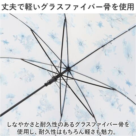 程よい透け感の傘生地に描かれたグラデーションやフラワーデザインがどこか幻想的♪