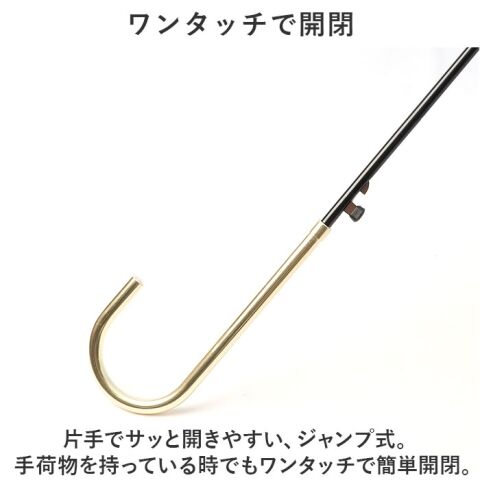 ハンドルは合皮、つゆさきや石突きにゴールドパーツをあしらいエレガントな雰囲気に。
