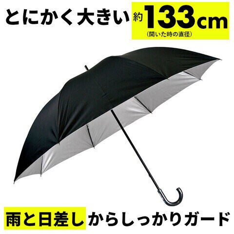 傘の下に大人2人が入っても雨に濡れにくい、親骨の長さ約80cm、直径約133cmの超ビッグサイズ。