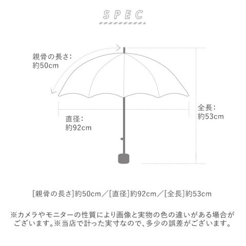 • サイズ(約):[親骨の長さ]50cm [直径]92cm [全長]53cm [収納時の長さ]23cm [収納時の幅]6cm