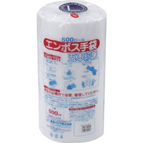 東京パック エンボス手袋 五本絞り#30 ロールタイプ Lサイズ(500枚入・粉なし) ER30L 【返品種別B】