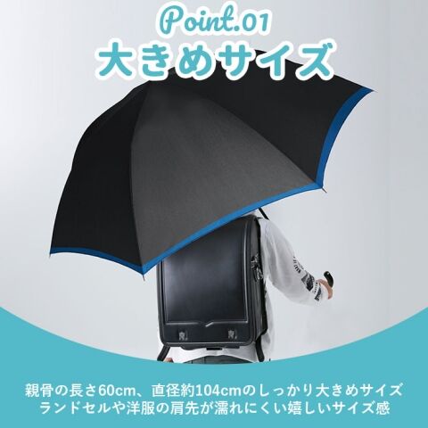 ランドセルや洋服の肩先が濡れにくい嬉しいサイズ感。