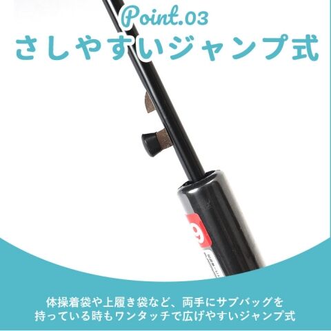 上履き入れやサブバッグなど、片手に手荷物を持っている時もワンタッチで開けるジャンプ式!