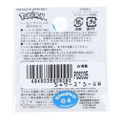 稲垣服飾 ポケットモンスター シールワッペン シャワーズ No.0134 POS035 【返品種別B】