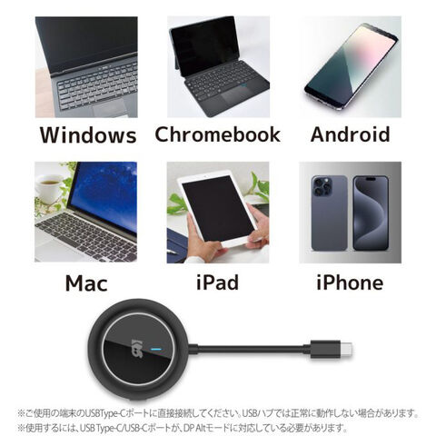 ※使用するには、USB Type-C/USB-Cポートが、DP Altモード(DisplayPort Alternate Mode)に対応している必要があります。