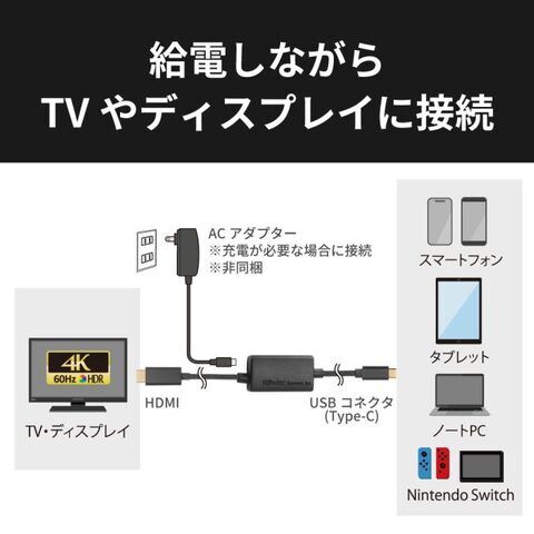 ※4Kで使用する場合、ご使用の端末、HDMIケーブル、ディスプレイのすべてが4Kに対応している必要があります。