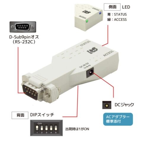 シリアルインターフェイスを持たないPCやiOS端末、Android端末なども接続することができ、対象の機器との距離が離れている場合など様々な用途に使用が可能です。