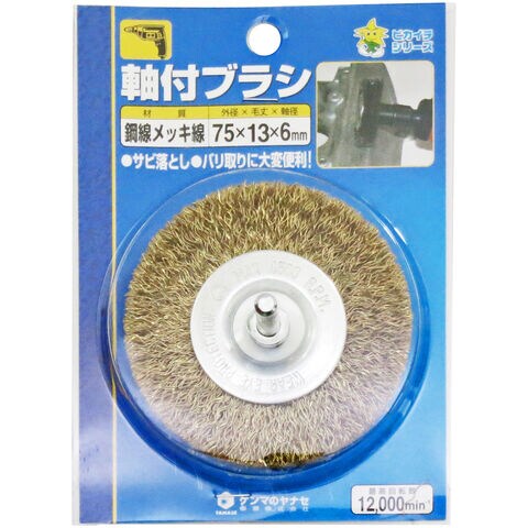 ヤナセ 軸付カップブラシ 鋼線メッキ HM75 【返品種別B】