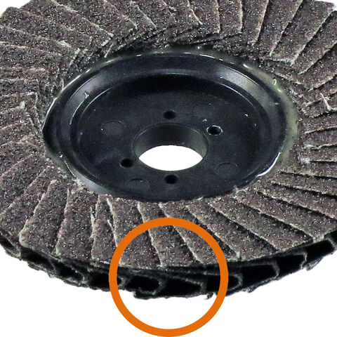 ◆研磨布を抑えている基盤が小さいのでディスクグラインダーのロックナット付近の最後まで使え、とても経済的です。