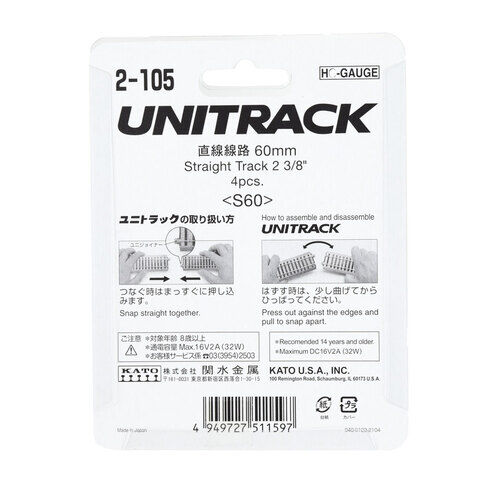 カトー (HO) 2-105 HOユニトラック 直線線路60mm(4本入) KATO 2-105S60MM 【返品種別B】