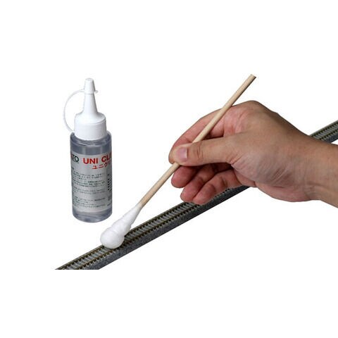 メンテナンスの定番「ユニクリーナー」に、線路掃除用の専用綿棒をセットした線路クリーニングキットです。