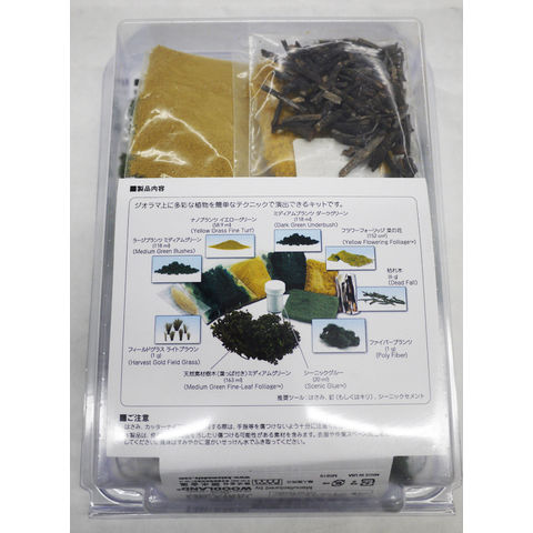 アンダーブラッシュ濃緑色×1 ブッシュ緑色×1 フラワーフォーリッジ菜の花×1 フィールドグラス黄金色×1 ファインリーフフォーリッジ緑色×1 ターフ枯草色×1 枯れ木×1袋 シーニックグルー×1 ポリファイバー×1