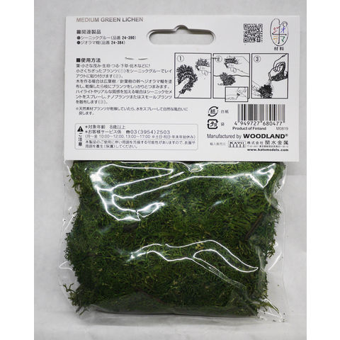 ・天然に産するコケの一種を加工して、レイアウト用に使いやすくした製品です。遠方の山岳風景の樹木、背の低い木や茂みの再現に最適です。