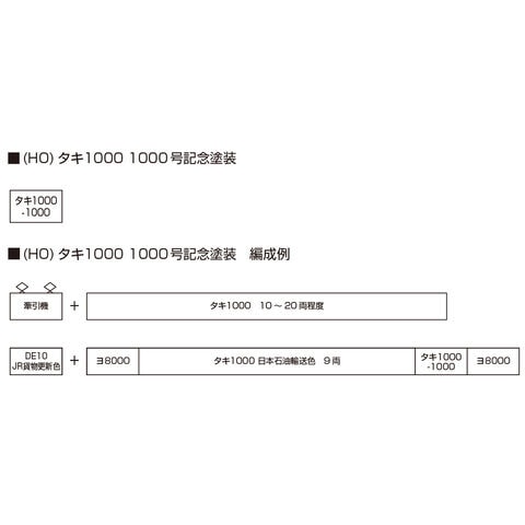 令和3年(2021)に1000号記念として特別な塗装で落成したタキ1000-1000を製品化 日本石油輸送の緑、日本オイルターミナルの青、運行を担うJR貨物の水色の3色をストライプ状に配した塗色と、各社のロゴマークが並ぶ鮮やかなデザインを的確に再現 車番は「タキ1000-1000」を印刷済 プラ成形技術を活かした異径胴の車体形状をリアルかつ的確に再現 手スリ・台枠・配管などの車体各所のディテールをリアルかつ的確に再現 立体感あふれるFT21台車と、「軸端が実際に回転するコロ軸受部」により、リアルな走行シーンを再現 編成最後尾についたときに付けられるレフレクター(反射板)パーツを付属。実車同様に着脱が可能