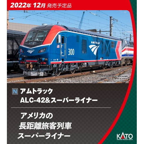 カトーの完成品Nゲージ車両、アムトラック ALC-42&スーパーライナー 4両セットです。