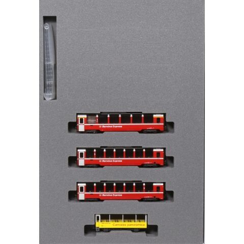 カトーの完成品Nゲージ車両、レーティッシュ鉄道「ベルニナ急行(新ロゴ)」 増結セット(4両)です。