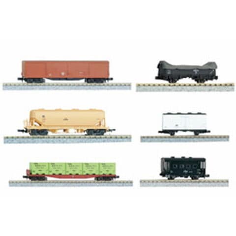 国鉄時代のバラエティ豊かな貨車から有蓋車、無蓋車、ホッパー車、冷蔵車、コンテナ車、車掌車をアソートした6両セット 本セットを2セット組み合わせれば、車掌車が前後に組成された国鉄時代の貨物列車の雰囲気がお手軽に再現可能 トラ45000は積荷状態を再現できる積荷カバーを付属。取り外しも可能 全車、アーノルドカプラー装備。別売の単品貨車各種と連結可能 ヨ5000はテールライト点灯。ダミーカプラーを付属 6両紙箱に収納