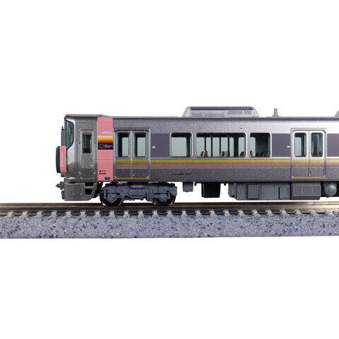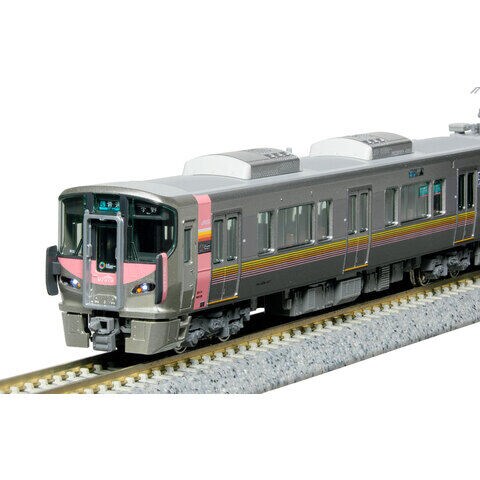 下関総合車両所岡山電車支所所属で川崎車両製のR12編成(2両セット)を製品化 ピンク色を基調とした外観、グラデーションのかかった帯を美しく再現 信号炎管がない先頭車の屋根を再現 避雷器は近年見られる形状のものを再現。また従来の227系と形状が異なる電動圧縮機を再現 2両セットはホーム状況確認カメラを装備していない形態 転落防止ホロを別パーツで再現。外観重視の先頭車用と、併結時用の2種類を用意 スロットレスモーター採用で、さらにスムースかつ静粛な走行性を実現 2両セットはトラクションタイヤなしで設定。2両セットには減磁板組込済 ヘッド/テールライト点灯(消灯スイッチ付)。ヘッドライトは白色LED、フォグライトはオレンジ色で再現 連結部はいずれもボディマウント密連(フックなし)を適用。先頭車先頭部カプラーに取付可能な電連(2段)を付属 前面行先表示取付済。交換用に印刷済2種と「無地」を付属 DCCフレンドリー 紙箱に収納