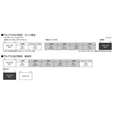 647号機を製品化。側面にレーティッシュ鉄道のロゴが大きく施されたデザインを再現 ライト周りを中心に更新された外観を再現 HID/LED化され、デザインが大きく変わったヘッドライトを再現(白色LED採用) 電気連結器、ホース(ジャンパ栓)類の配置変更、グラウビュンデン州のエンブレムが取り付けられた前面を再現。エンブレムは盾形のプレートが取り付けられた形状を再現 前面中央付近の左右2か所ずつにあるブレーキホースは別部品で再現 スロットレスモーターの採用で、スムースかつ静粛な走行性を実現 アーノルドカプラー標準装備 最小通過曲線半径:R150 ライト基板を品番29-025 DN163K4a(ホビーセンターカトー扱い)に交換することでDCCに対応 紙箱に収納