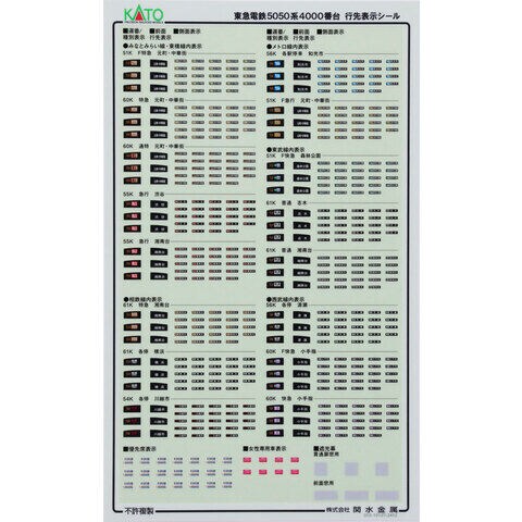 - 付属品:交換用前面表示(「53K 各停 川越市」 「55K 急行 渋谷」 「無地」)、行先表示シール