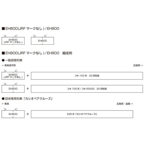 EH500譲りの堂々たる2車体構造に、交流電機特有のメカニカルな屋根上機器を再現 両車体側面に設置されたLCXアンテナの膨らみ、運転室屋根上に設置された新幹線と同様の静電アンテナを再現 赤い車体に新幹線を意識したスピード感を表すシルバーと、本州と北海道を結ぶイメージの白のラインの塗色を美しく再現 手スリ、解放テコ、信号炎管、静電アンテナ、列車無線アンテナ、ホイッスルカバーを取付済 フライホイール搭載動力ユニット採用で安定した走行が可能 ヘッドライト点灯(電球色LED採用) 選択式ナンバープレート「5、8、14、19」。製造銘板は「東芝」を印刷済。保安装置表記は「PF」「SF」「Ps」「C」 アーノルドカプラー標準装備。交換用ナックルカプラー付属