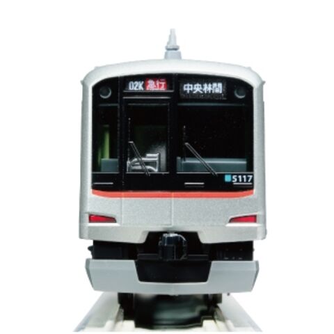 7次車+13次車で構成され、側面行先表示が一体式の5117編成を製品化 緑帯が特徴の田園都市線用のカラーリング、従来製品(2次車)とは異なる床下機器や前頭部を再現 先頭車屋根上に増設されたデジタル無線アンテナ、IRアンテナが撤去された中間車(5417)の形態を再現 三菱製冷房装置(CU708形クーラー)が搭載された屋根上を再現 編成中間部はKATOカプラー密連形(フックあり)を標準装備。先頭部はダミーカプラー装備 ヘッド/テールライト、前面行先表示点灯(白色LED採用) スロットレスモーターの採用で、スムースかつ静粛な走行性を実現 前面表示「急行 中央林間」取付済。交換用として「各駅停車 押上」「準急 南栗橋」「(無地)」を付属 側面表示は黒ベタ印刷。行先表示シール付属 紙箱に収納・10-1455増結セットのケースに併せて収納可能