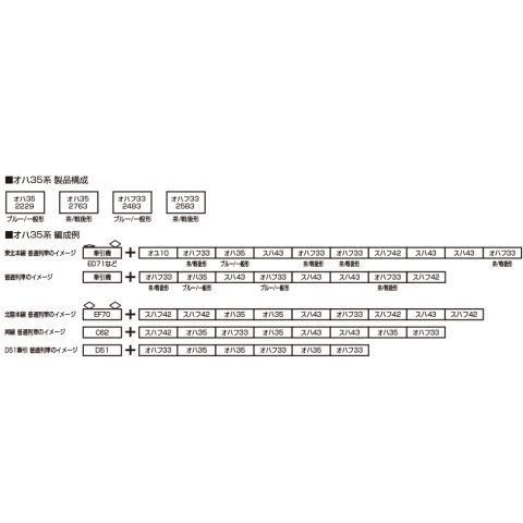 戦後形は「きのこ、食パン」と形容された妻板をもつ特徴を的確に再現 屋根上のベンチレーターを別パーツで表現 国鉄旧一般形客車の標準塗色を美しく表現 茶色は原形車両のイメージで木製ドアの形状を採用 アーノルドカプラー標準装備 表記類は、オハ35 2763 仙セン