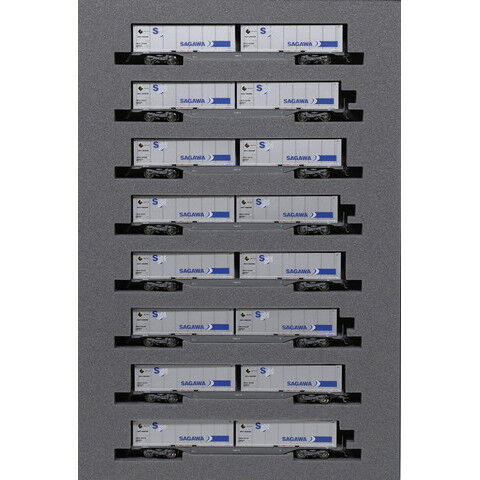 カトーのNゲージ車両 完成品、M250系 スーパーレールカーゴ(U50Aコンテナ積載) 増結セットB(8両)です。